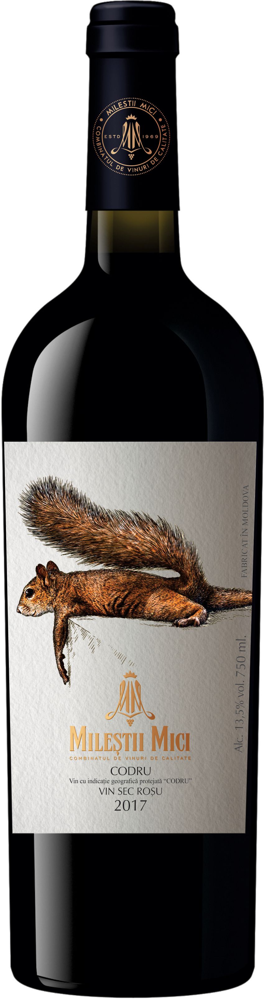 Codru 2017 - red dry wine, with Protected Geographical Indication, produced from Cabernet-Sauvignon (75%) and Merlot (25%) wines. It is a very special Moldovan wine blend with a rich garnet colour. The bouquet will charm you with its tender bitter cherry flavour, lightly spiced with saffron and chocolate hints. Its full, fresh and fruity taste will make it a perfect fit for red saucy meat dishes or baked meat and cheese rolls.
